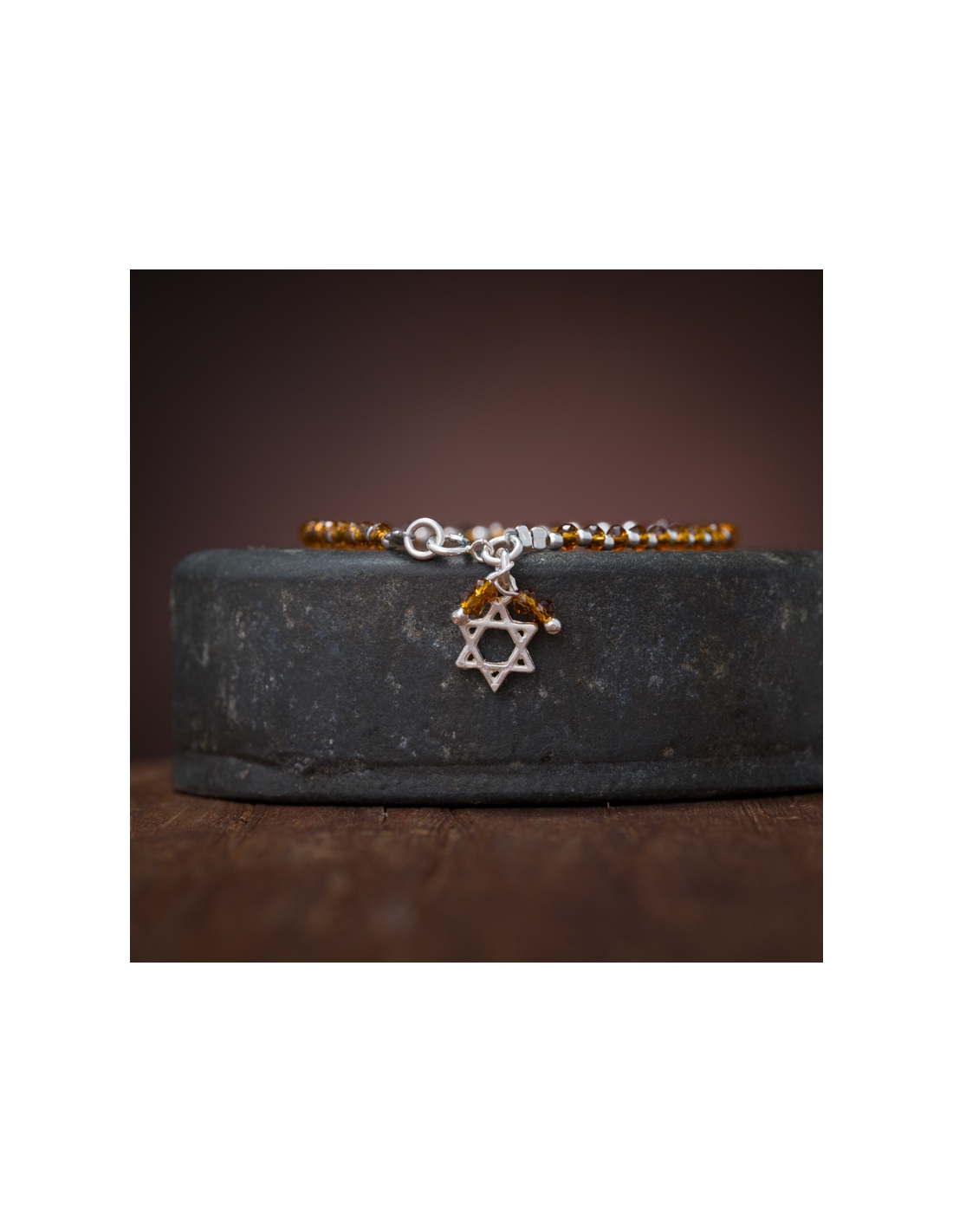 Pulseras de plata .925 con cristales, bolitas lisas y dije estrella de David