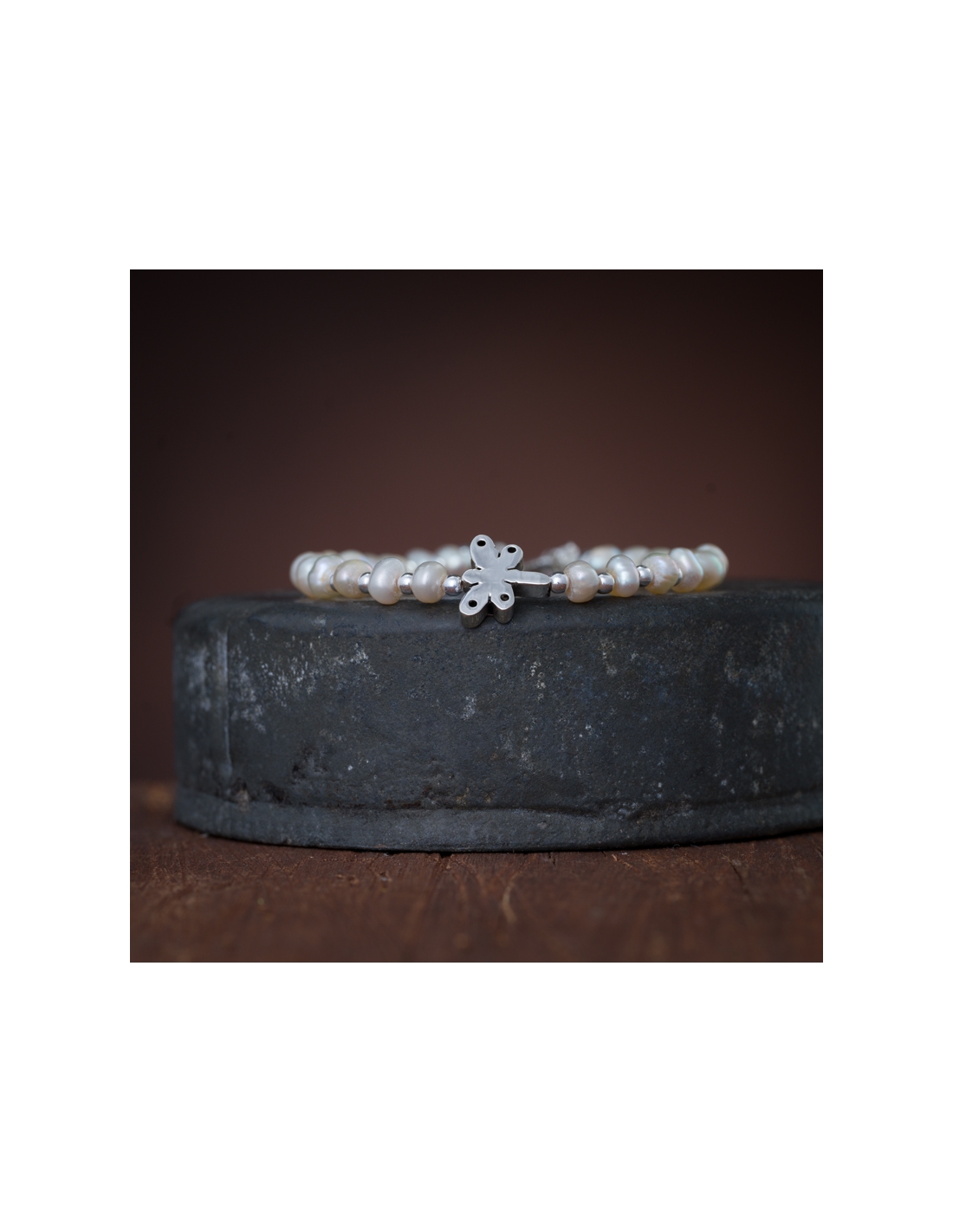Pulseras de plata .925 con perlas naturales bolitas lisas, dije libélula con extensión de 2 cm