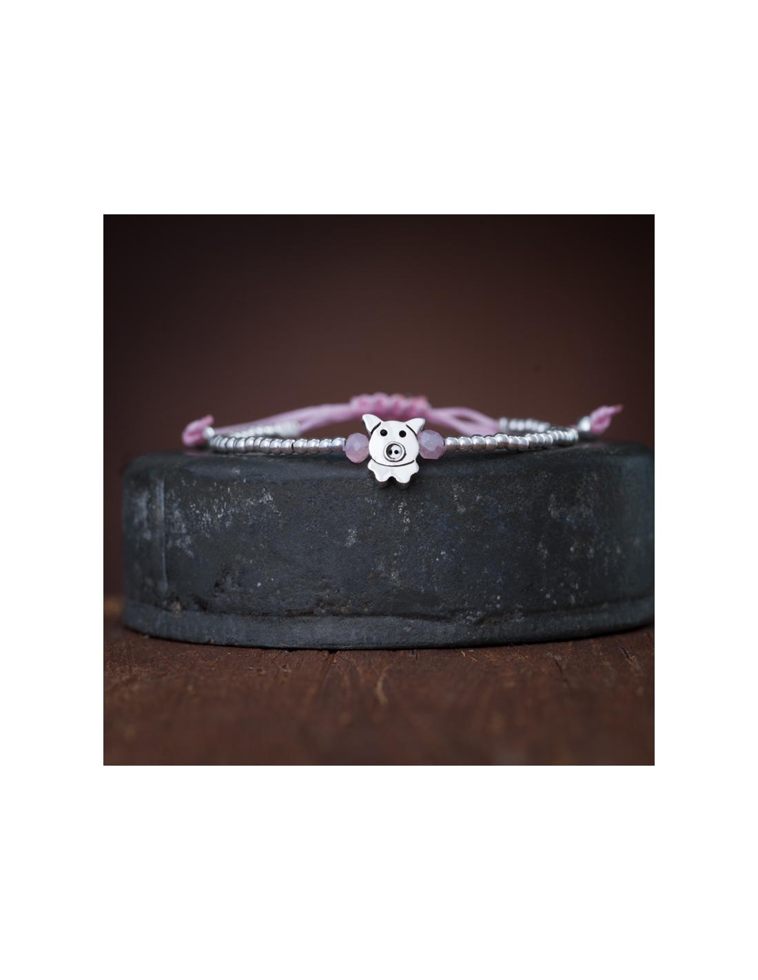 Pulseras de plata .925 ajustable, bolitas lisas con dije cartoneado cochinito