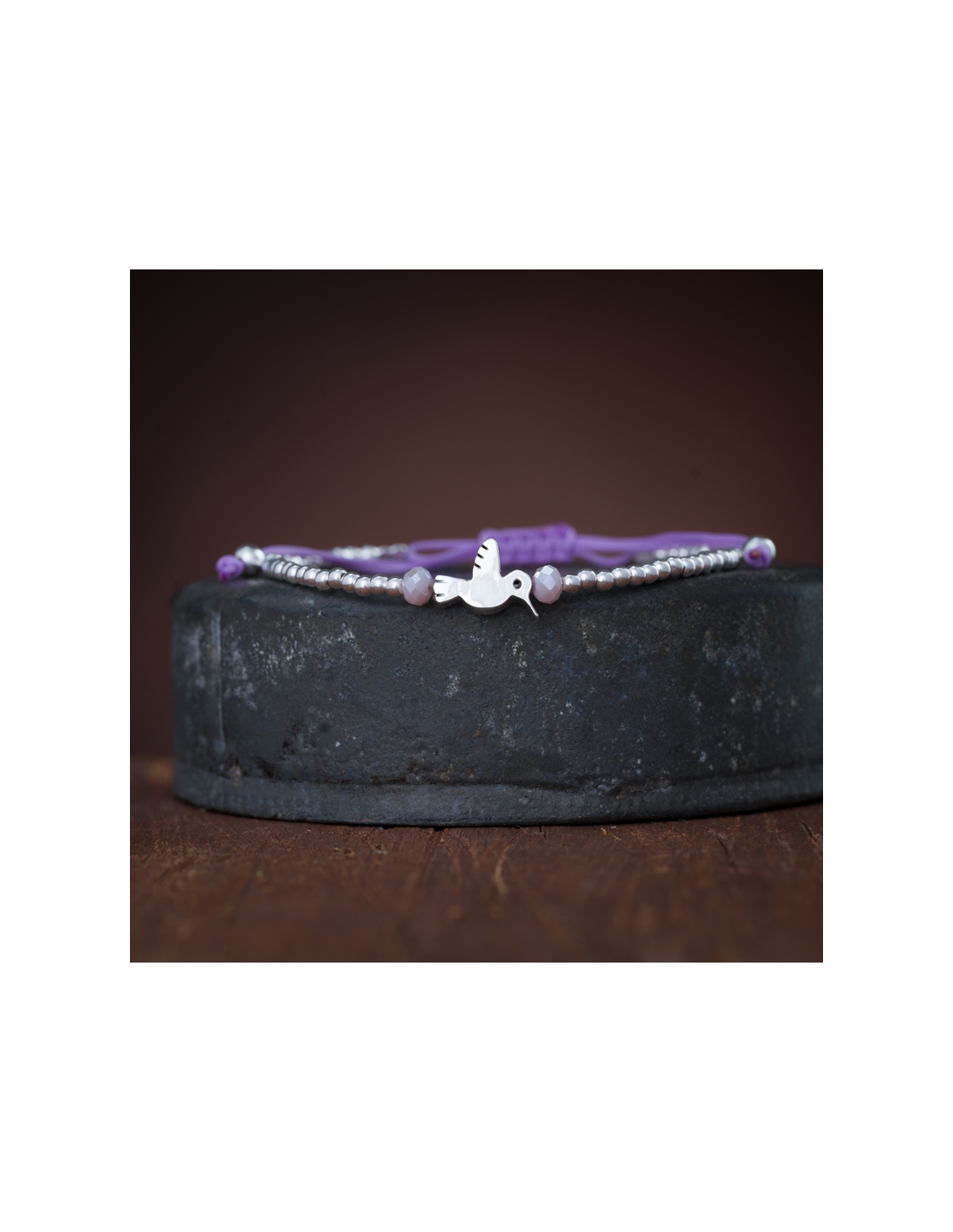 Pulseras de plata .925 ajustable, bolitas lisas con dije cartoneado colibrí