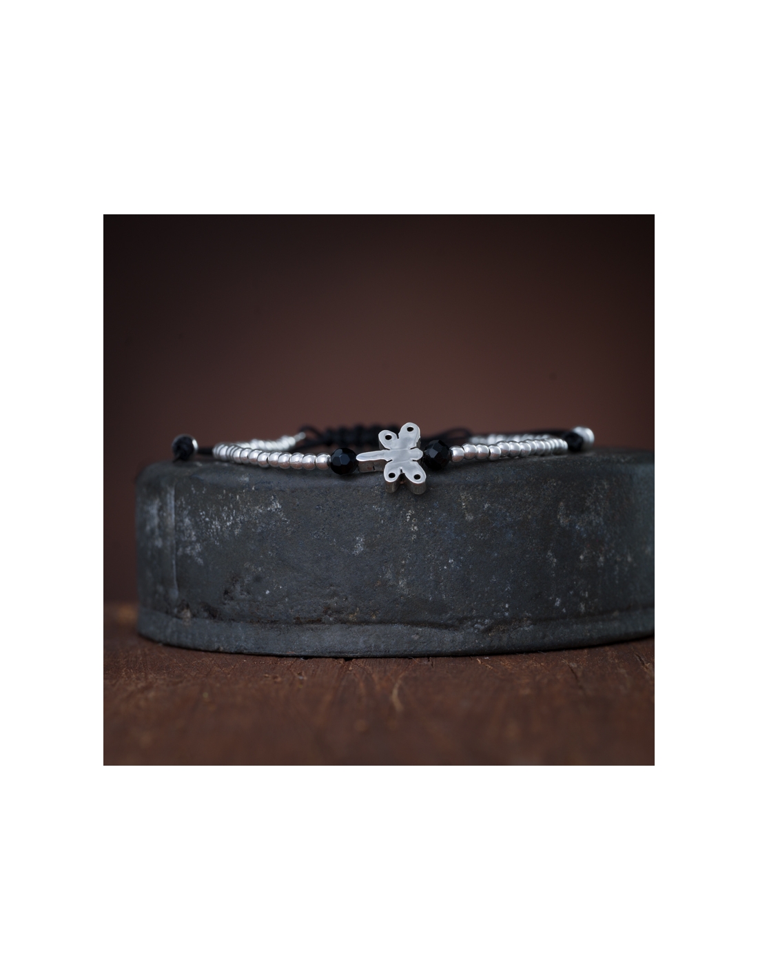 Pulseras de plata .925 ajustable, bolitas lisas con dije cartoneado libélula