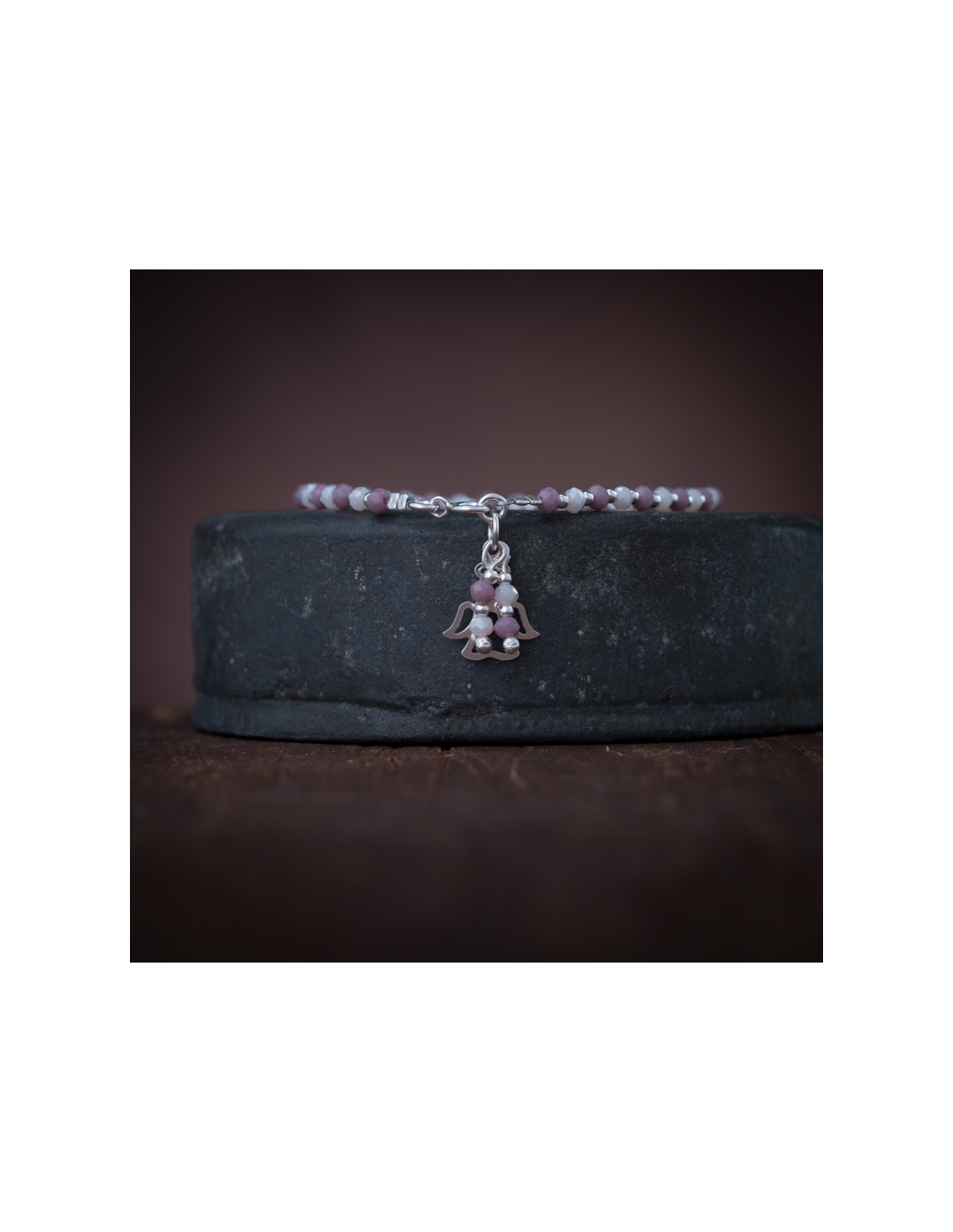 Pulsera de plata .925 cristales pequeños color lila y blanco dije ángel