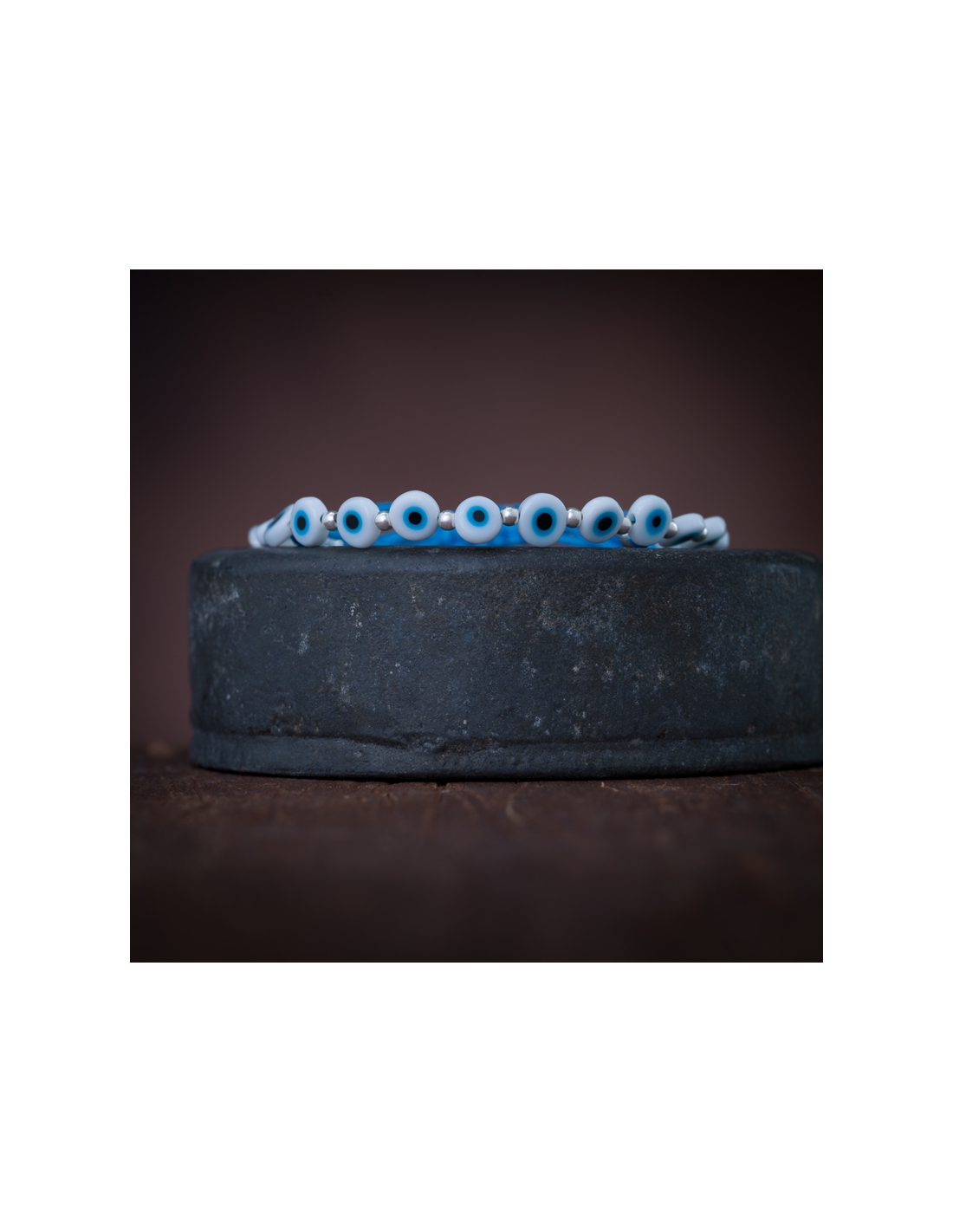 Pulseras de plata .925 ajustable, con ojos turcos y bolitas lisas