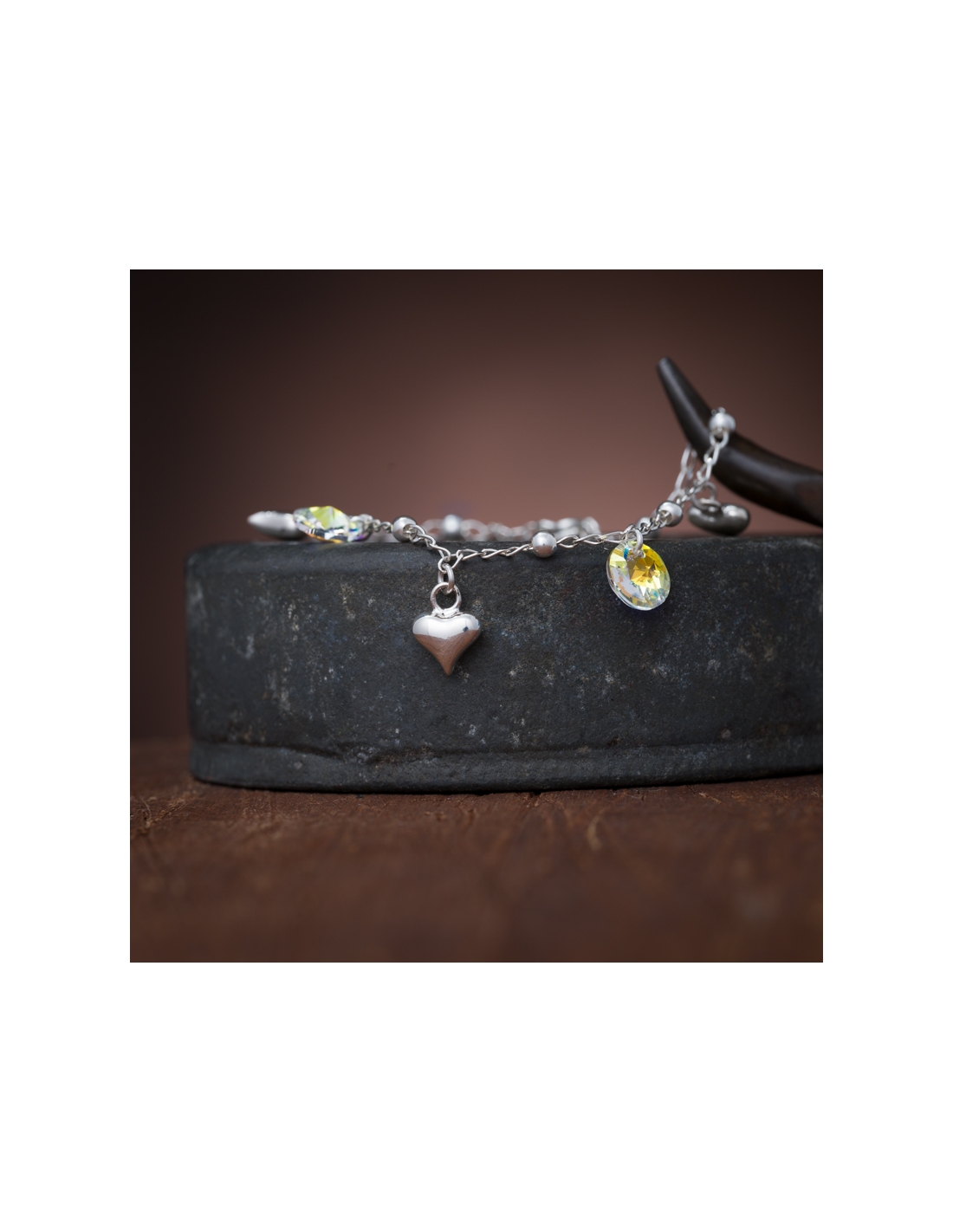 Pulsera de plata .925 con cristales y dijes colgantes de corazones