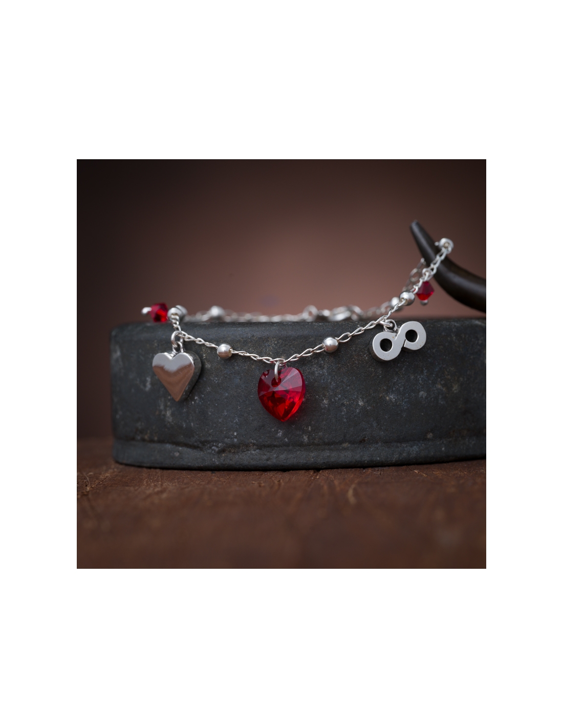 Pulsera de plata .925 "Cristales y dije colgantes de Infinito"