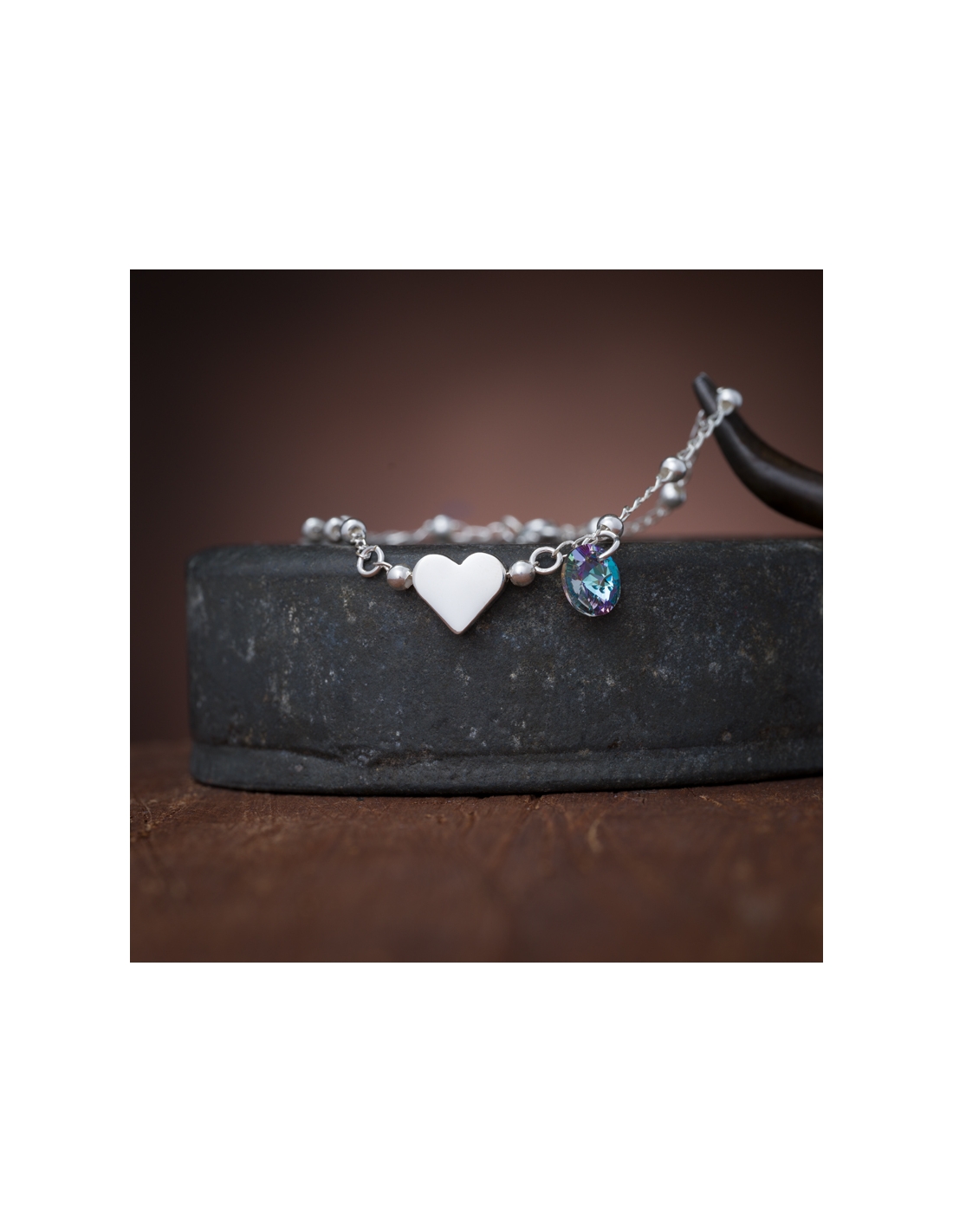 Pulsera de plata .925 "Cristal, dije de corazón"