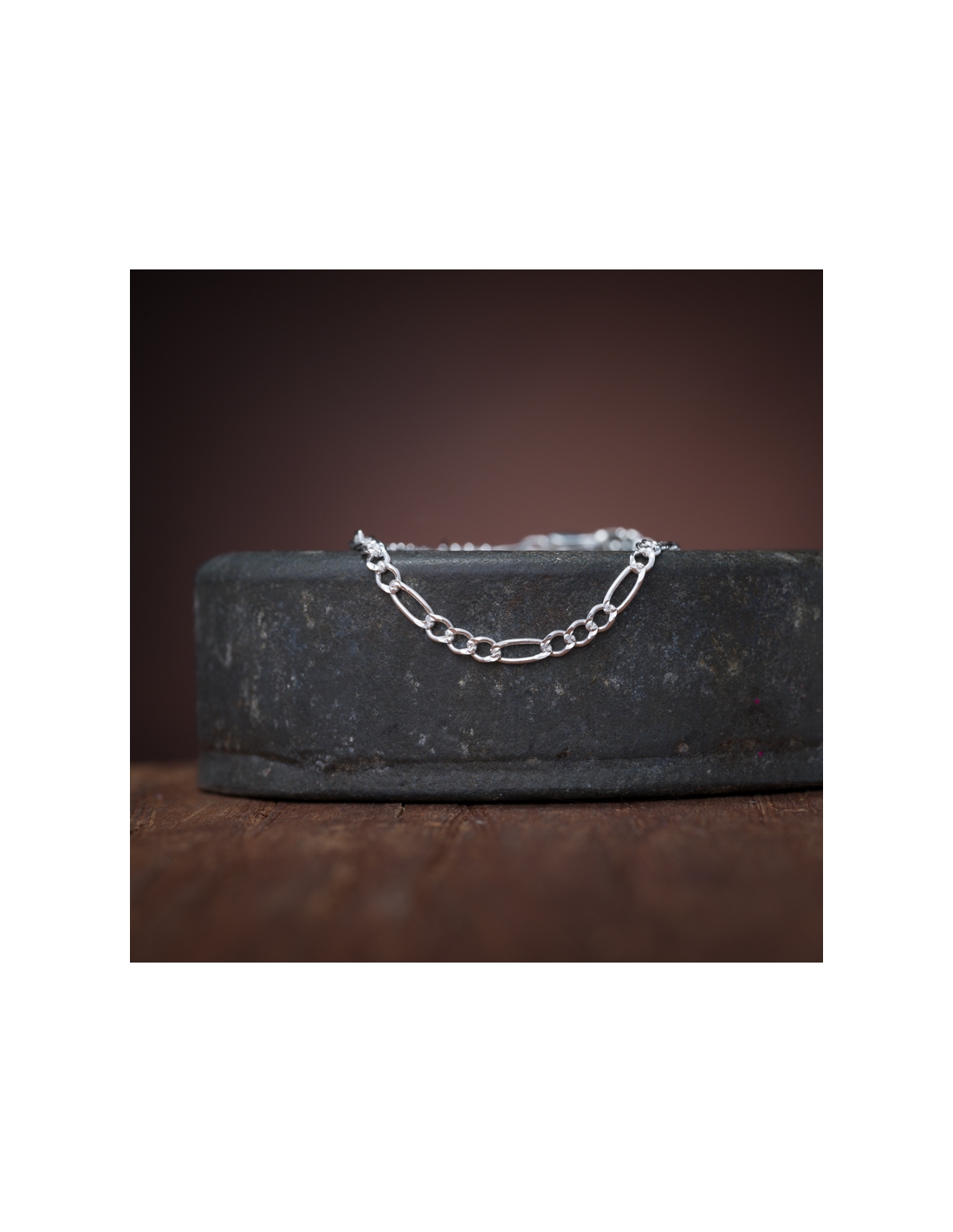 Pulseras de plata .925 Fígaro 3x1 diamantado, medida 18 cm de largo y 3 mm de ancho