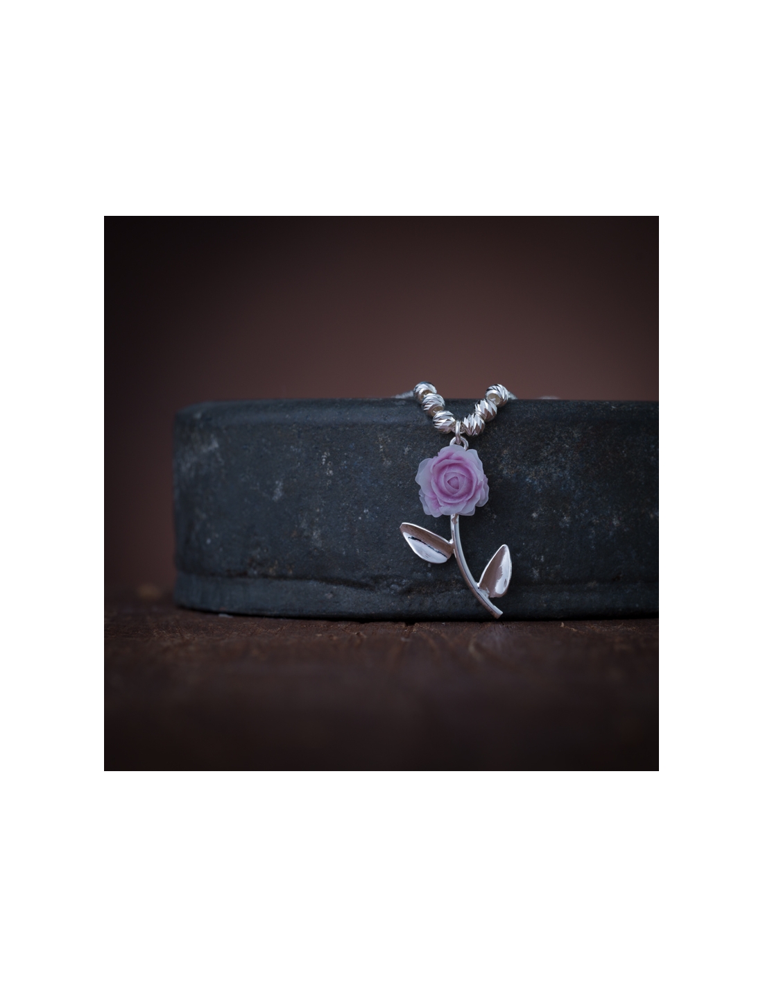 Collar de plata .925 con bolitas diamantadas y dije rosa