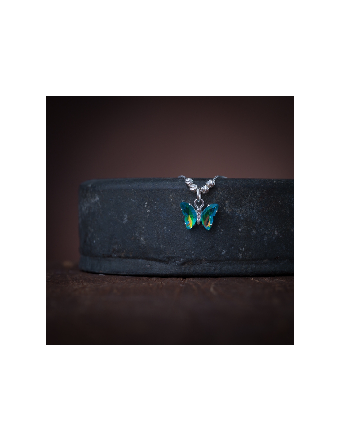 Collar de plata .925 con bolitas diamantadas y dije mariposa de cristal