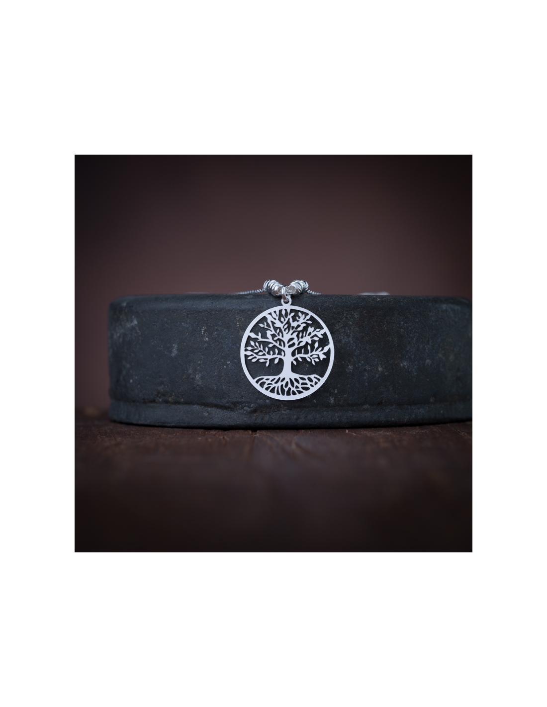Collar de plata .925 con bolitas y dije árbol de la vida