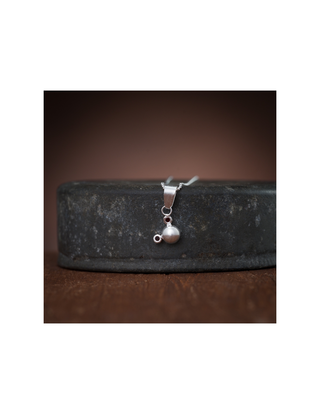 Collar de plata .925 Dije pequeño ratón, zirconias rojo, cadena 40cm de largo