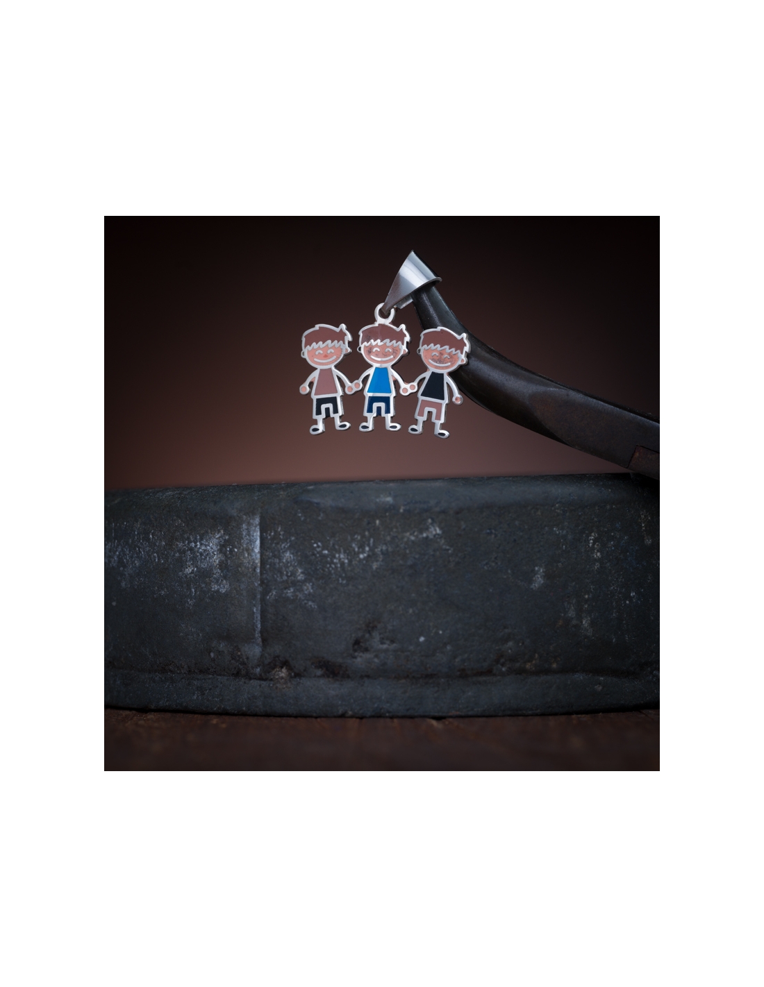 Dijes de plata .925 3 niños con esmalte 2.1 cm