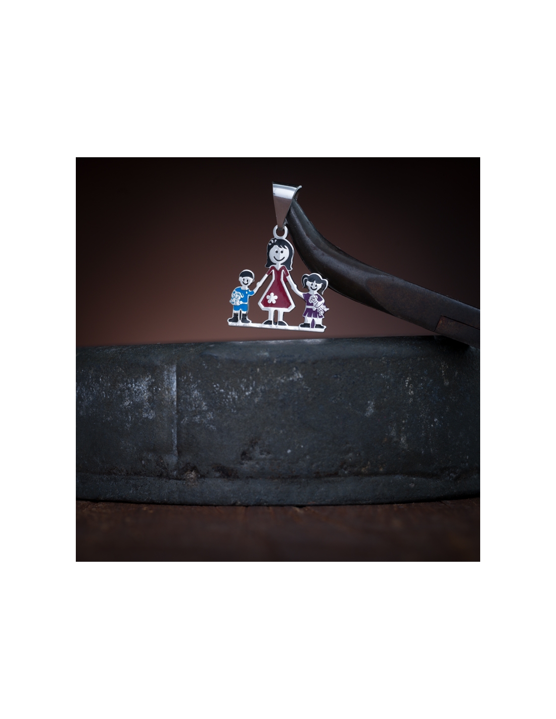 Dijes de plata .925 mamá niño y niña con esmalte 2.5 cm