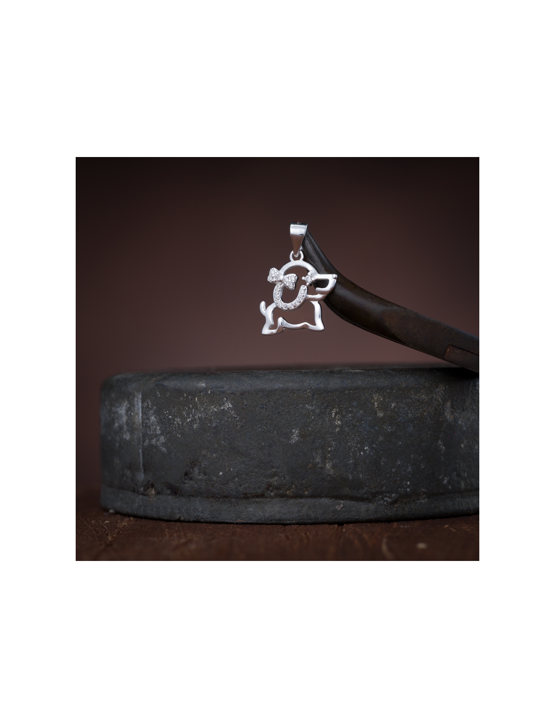Dijes de plata .925 perrita con moño y micro circonias de 2 cm