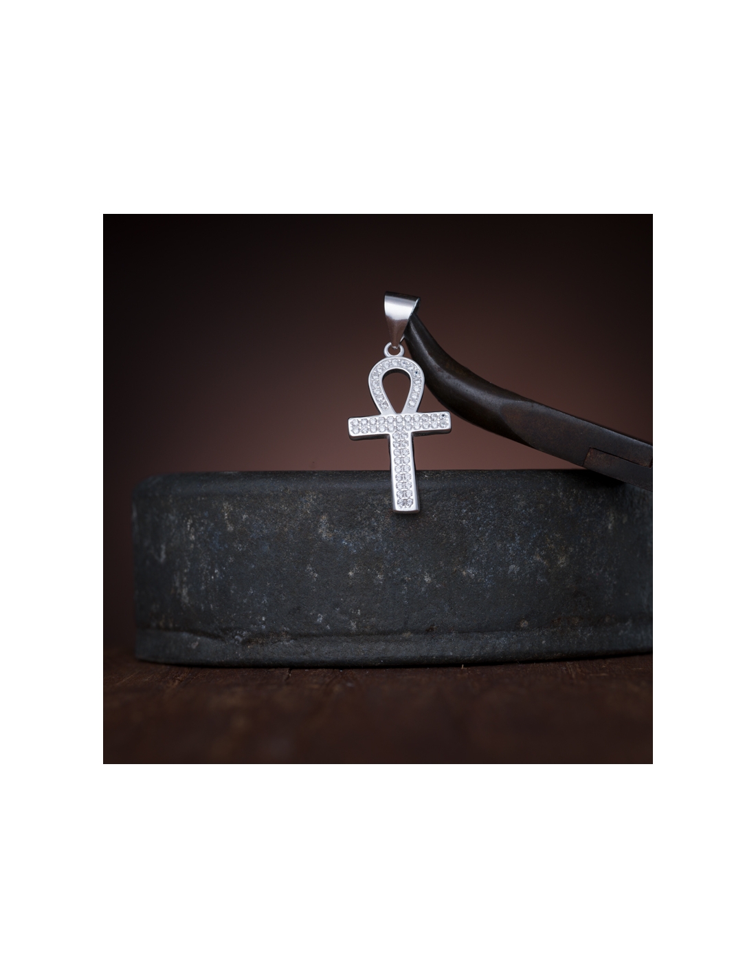 Dijes de plata .925 cruz egipcia con circonias de 3.3 cm