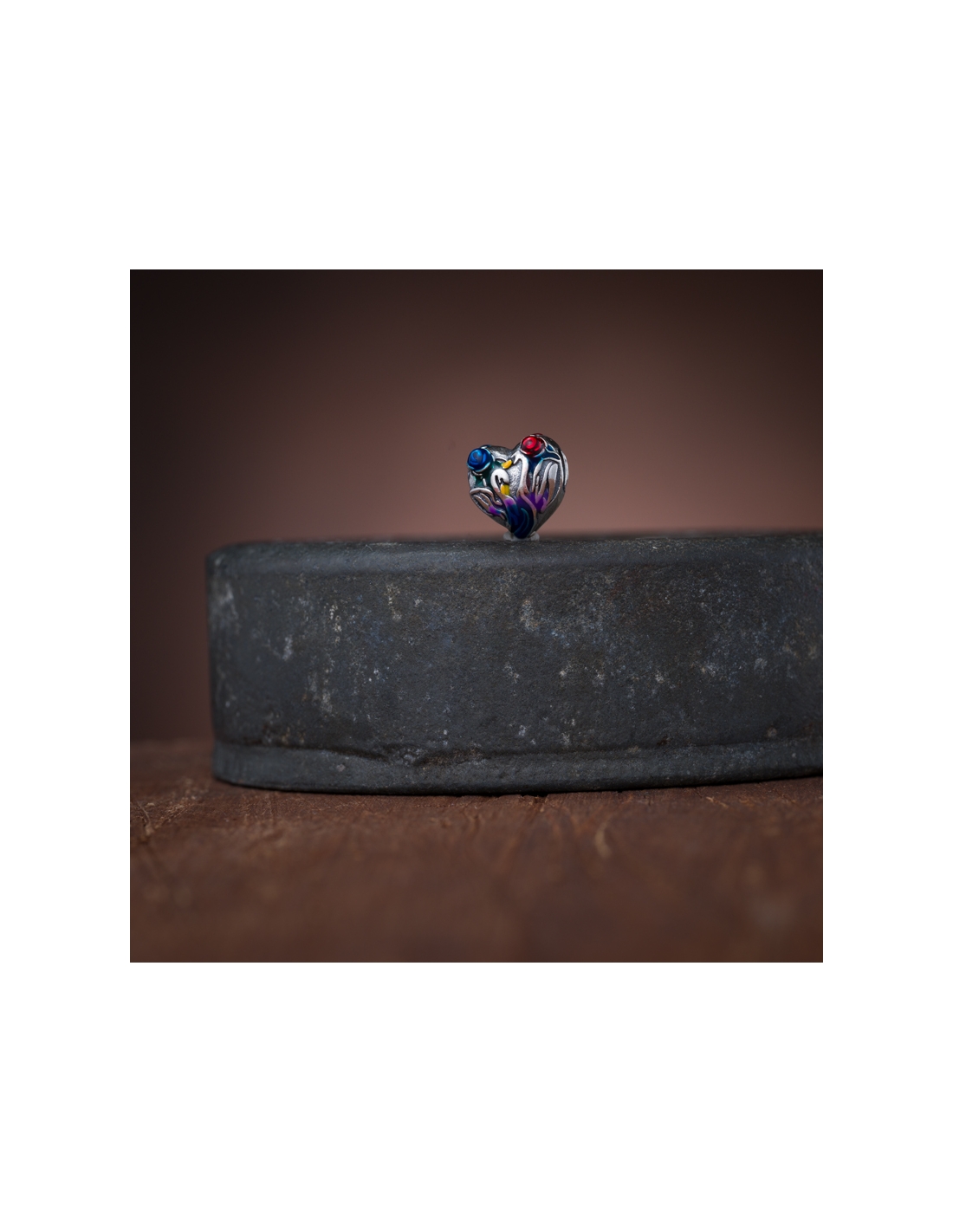 Dijes de plata .925 para pulsera, corazón pasa cadena con esmalte de 1.2 cm