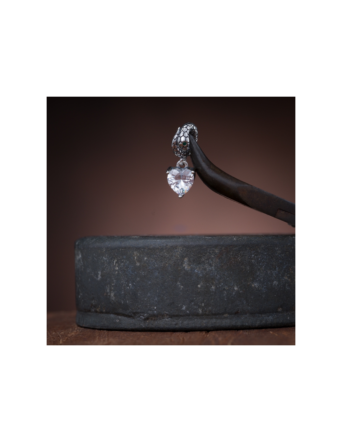 Dijes de plata .925 para pulsera tipo Pan, serpiente con circonias y corazón colgante, de 2.1 cm