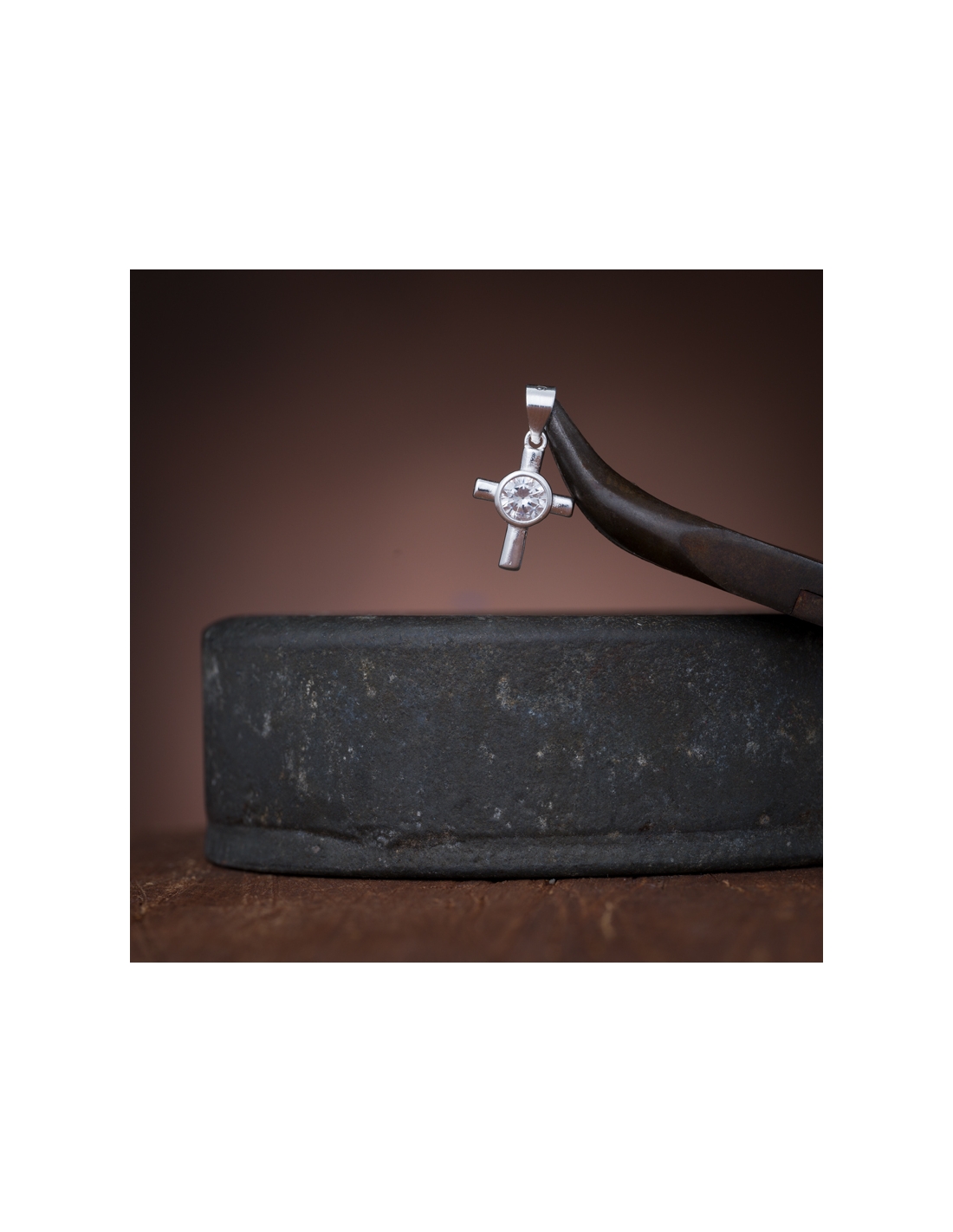 Dije de plata .925 "Cruz" con zirconia, 2 cm