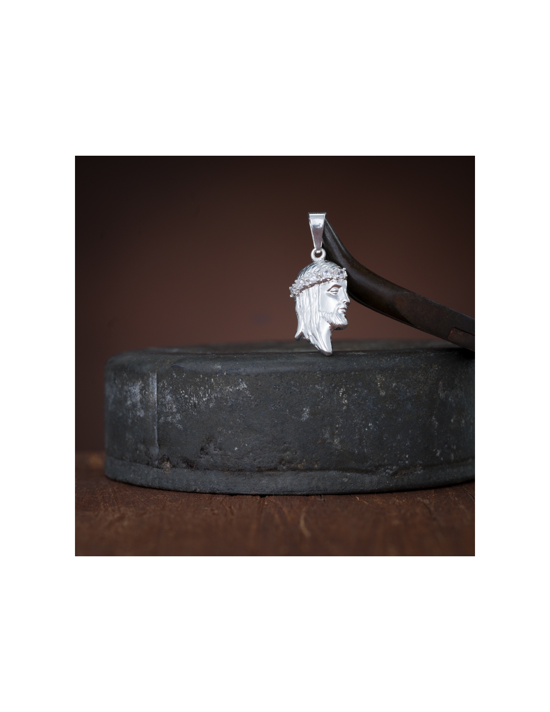 Dijes de plata .925 rostro de cristo con circonias de 3.1 cm