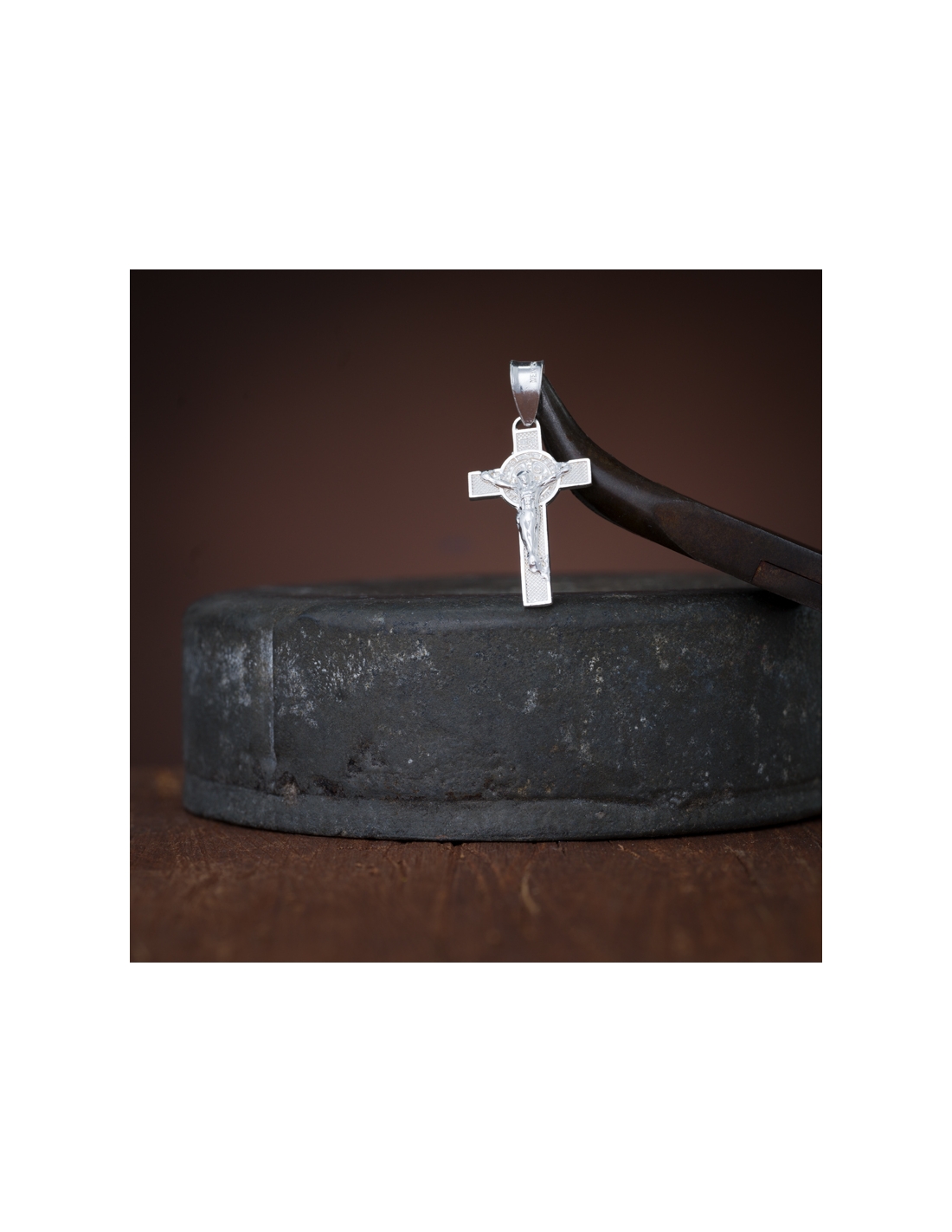 Dijes de plata .925 cruz de san Benito con cristo de 3 cm