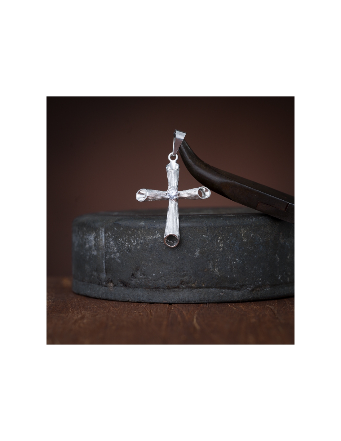 Dijes de plata .925 cruz con circonia de 4 cm de largo