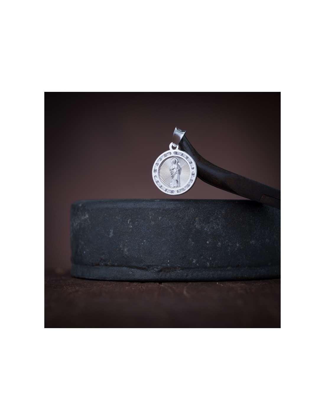 Dijes de plata .925 medalla de san judas con circonias de 2.3 cm