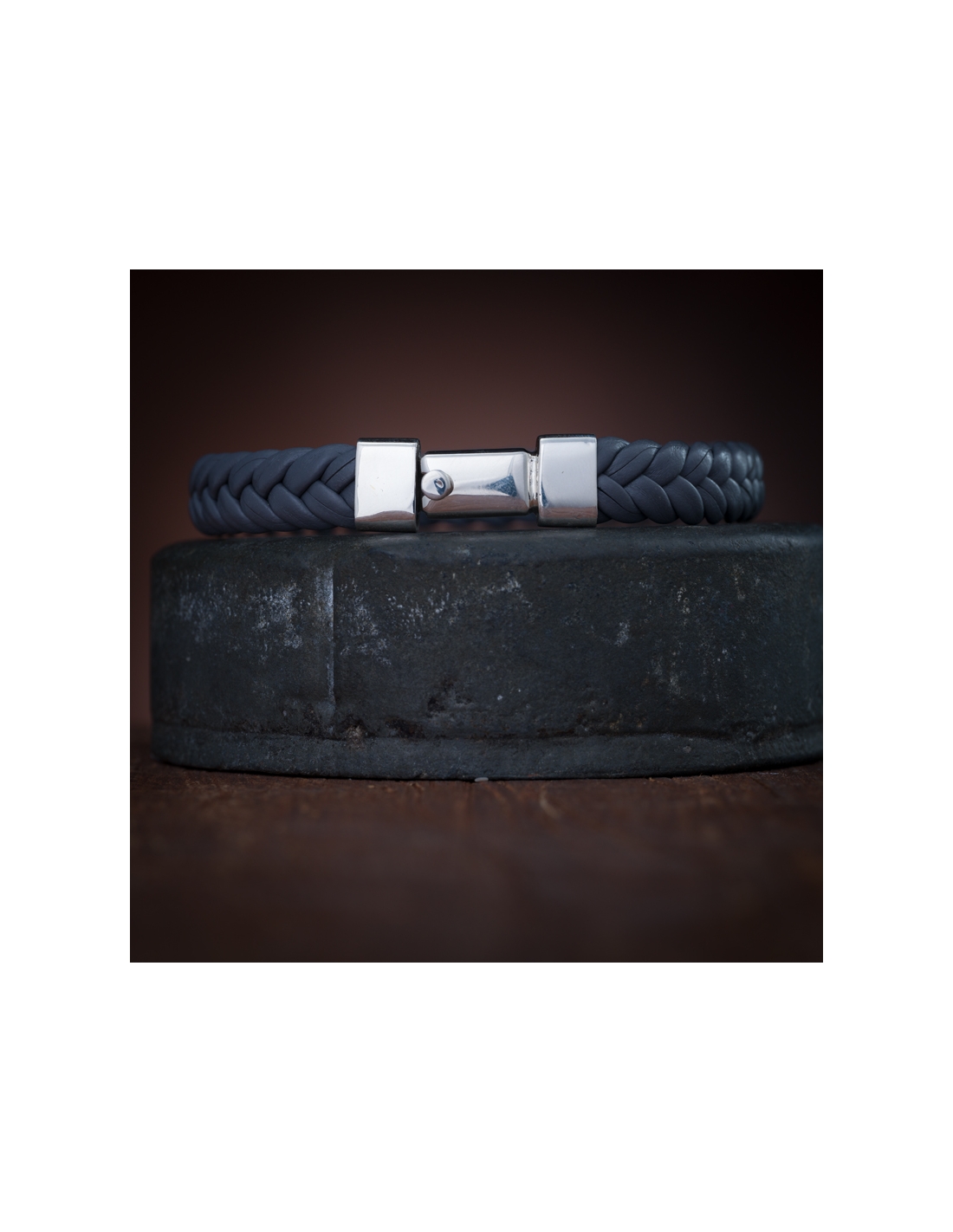 Pulsera de piel gris trenzada, con terminales y broche de plata .925, 20 cm de largo