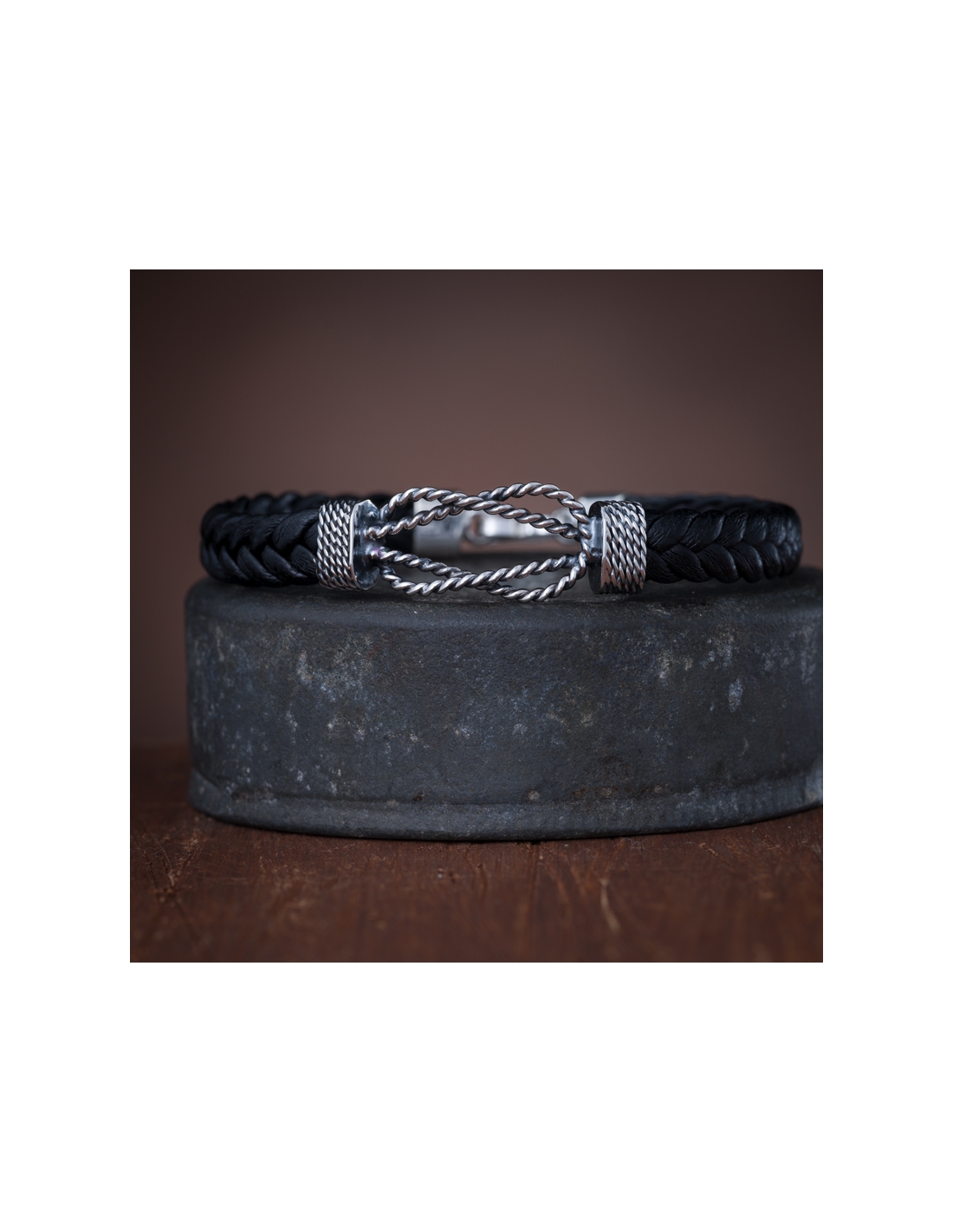 Pulseras de plata .925 con piel sintetica trenzada y figura en torzales
