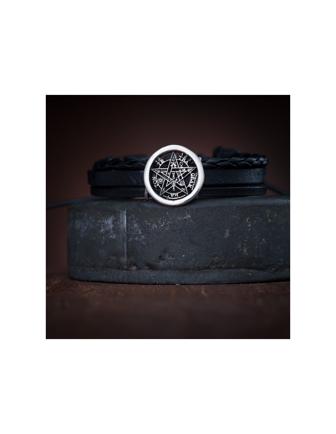 Pulseras de plata .925 ajustable con piel y dije Tetragrámaton