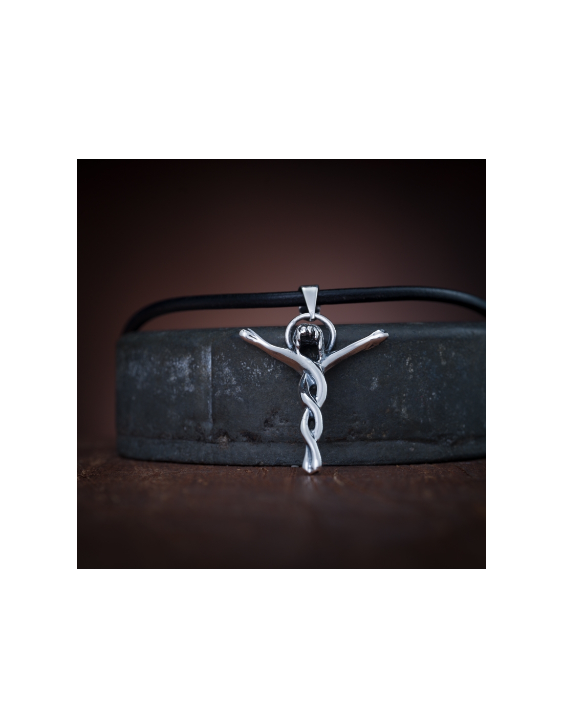 Collares de plata .925 dije crucifijo, collar de piel de 50 cm