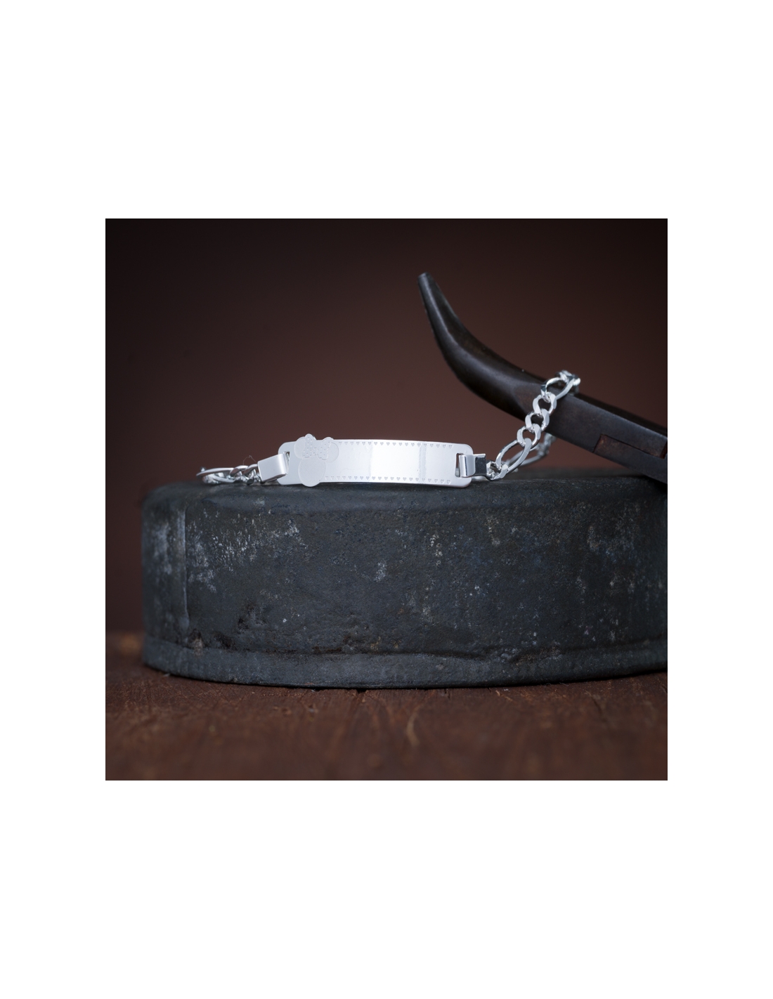 Esclavas de plata .925 plaquita grabado ratoncito, de 16 cm de largo