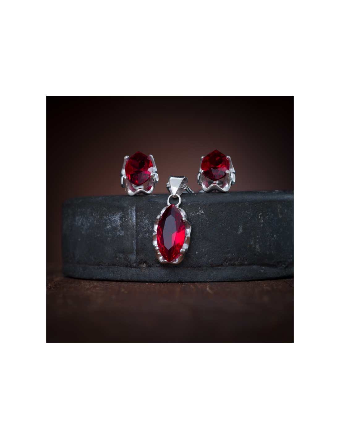 Juegos aretes collar de plata .925 con cristal en forma de almendra