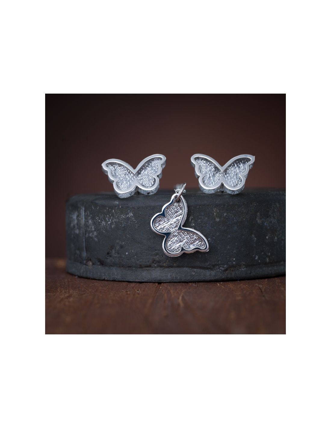 Juego aretes y collar de plata .925 mariposas liso con acrílico