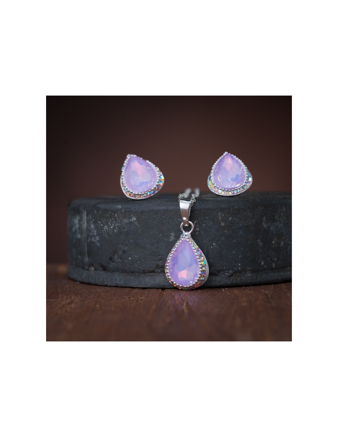 Juego aretes y collar de plata .925 gota con cristales