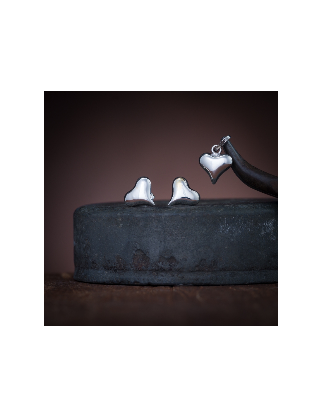 Juego aretes y dije .925 corazones lisos bombeados