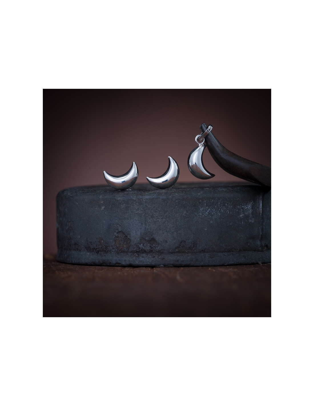 Juego aretes y dije .925 lunas lisas bombeadas