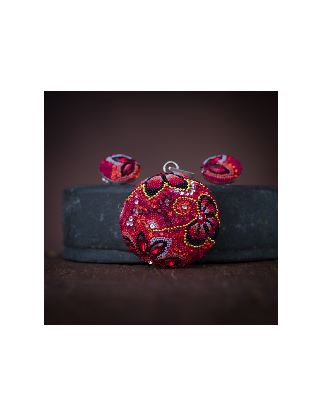Juegos aretes y dije de plata .925 circulos diseño con cristales y micro perlas