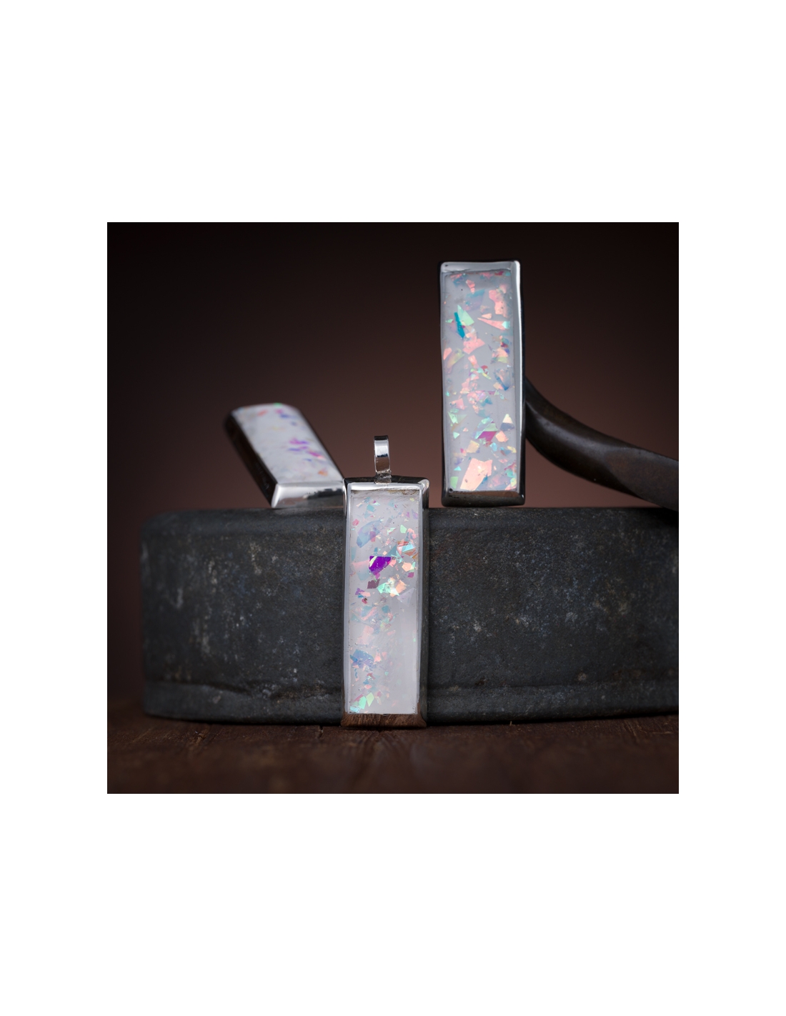 Juegos aretes y dije de plata .925 rectángulos con opalina