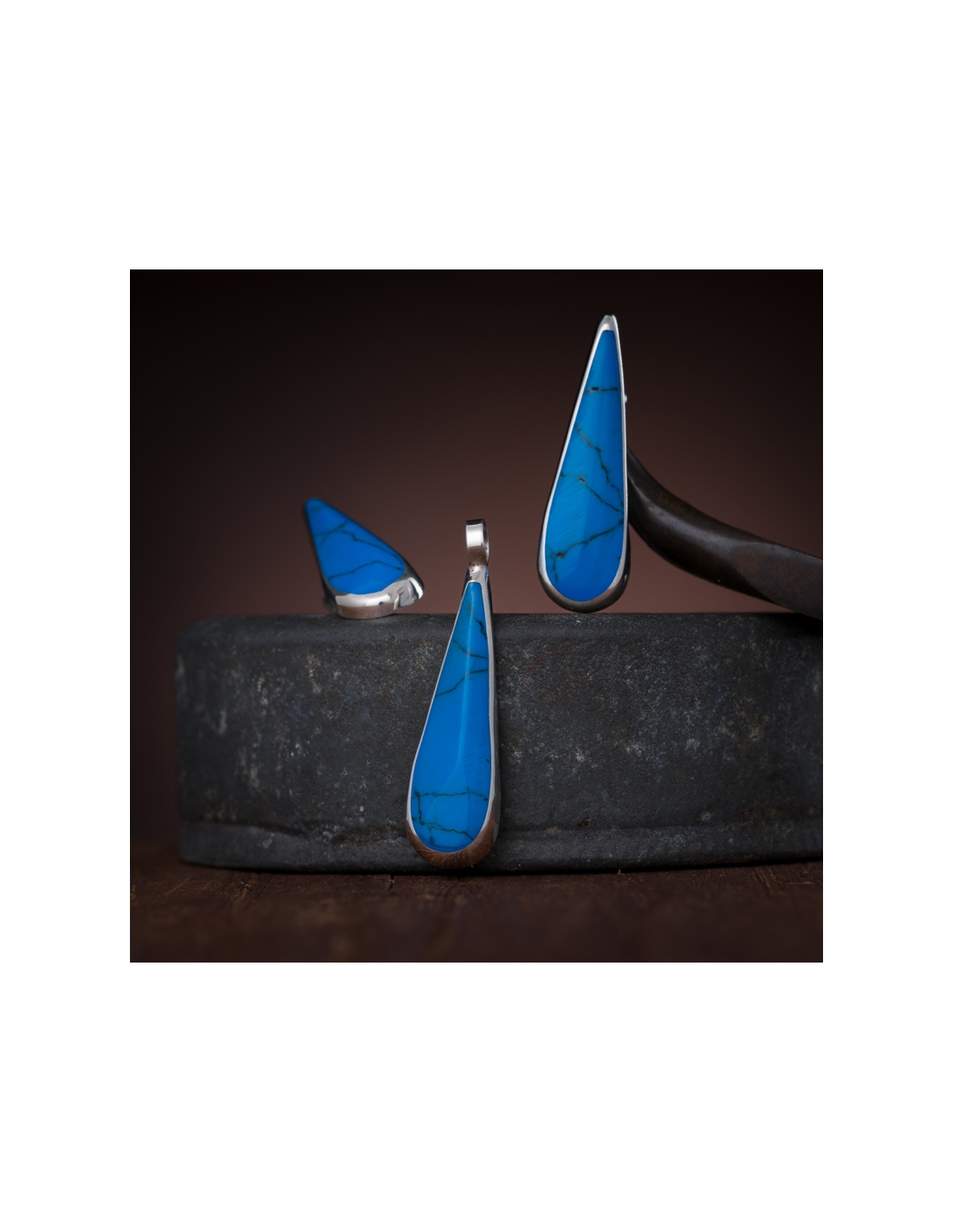 Juegos aretes y dije de plata .925 gotas alargadas con piedra sintética