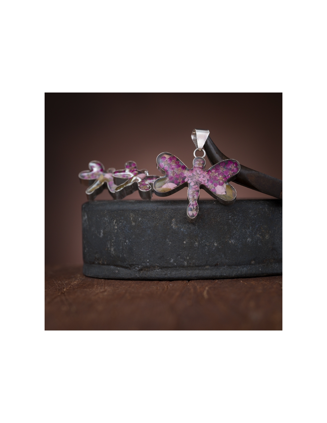 Juegos aretes y dije de plata .925 libélula diseño naturaleza muerta