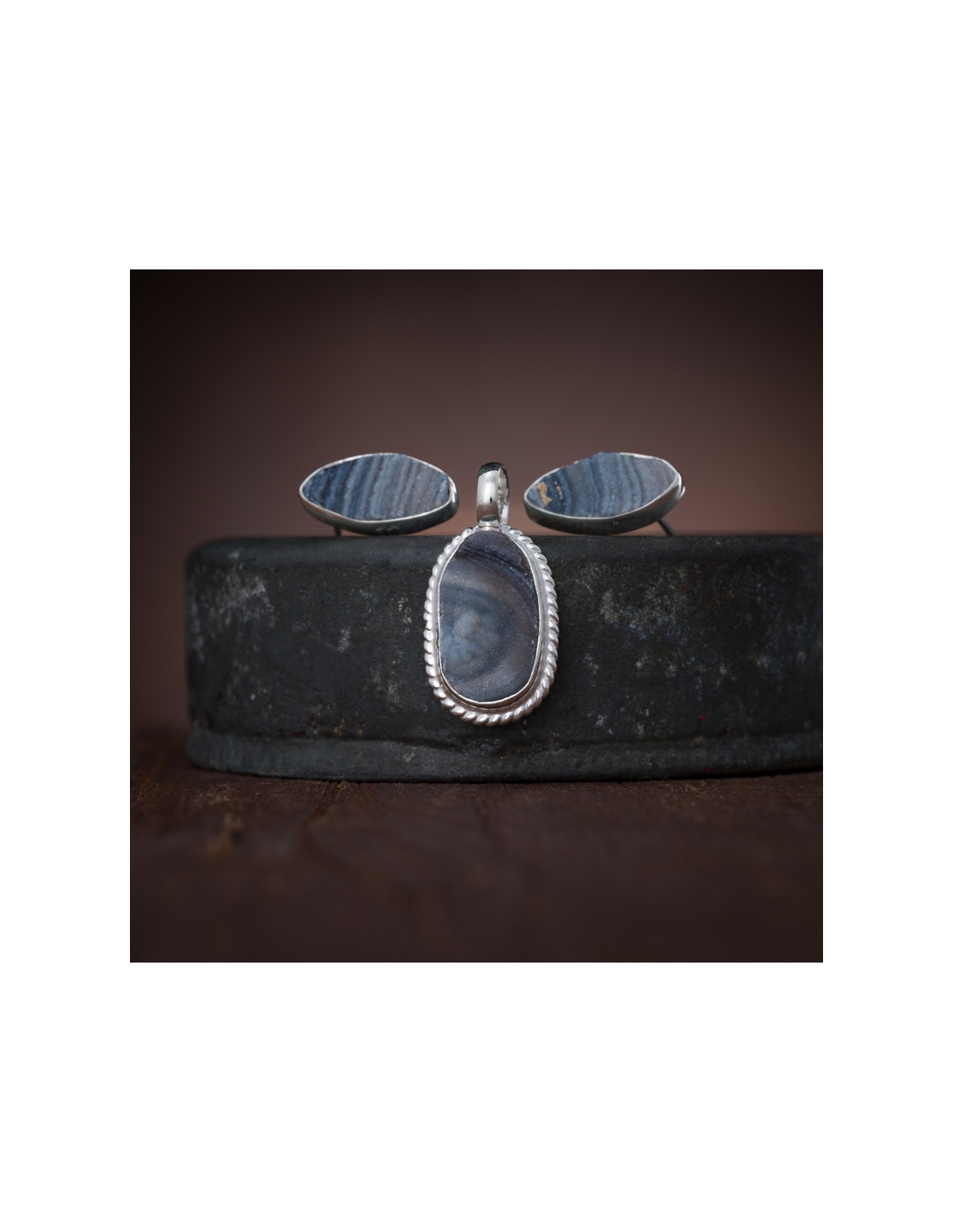 Juego aretes y dije de plata .925 diseño con piedra natural ( DRUZY )