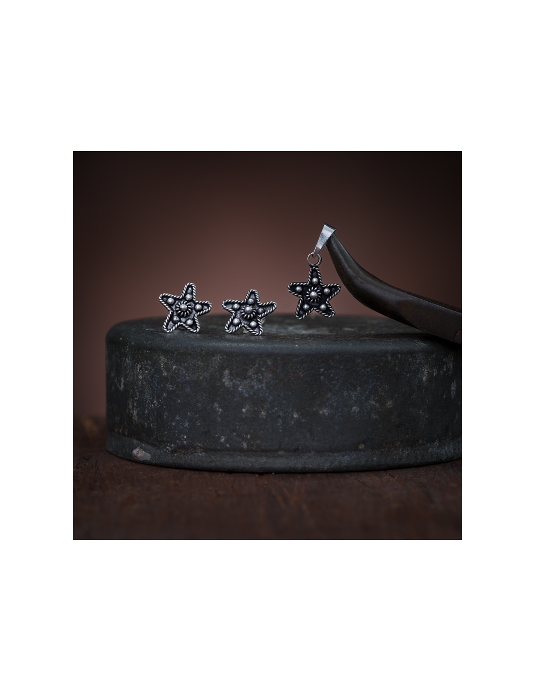 Juego aretes y dije de plata .925 estrella oxidada