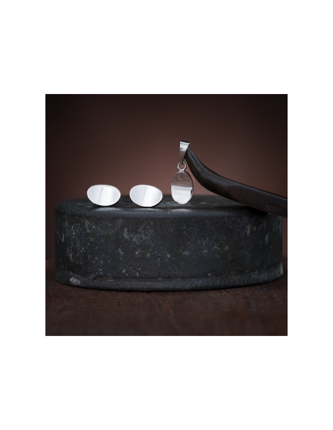 Juego aretes y dije de plata .925 cartoneados en forma de óvalo