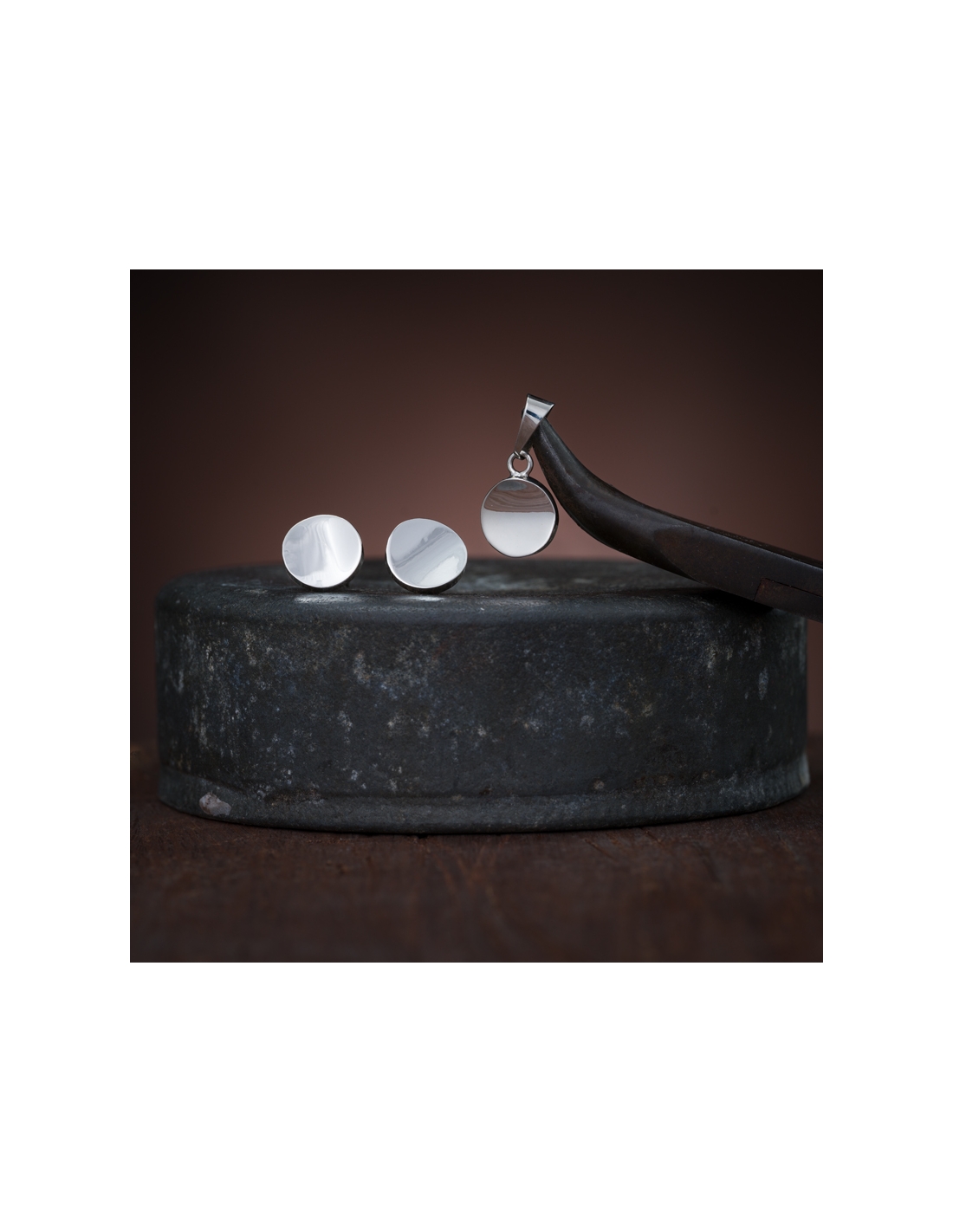 Juego aretes y dije de plata .925 cartoneados en forma de círculos cóncavos