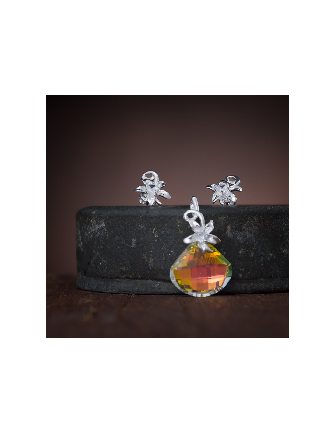Juegos aretes y dije de plata .925 con cristal y circonia