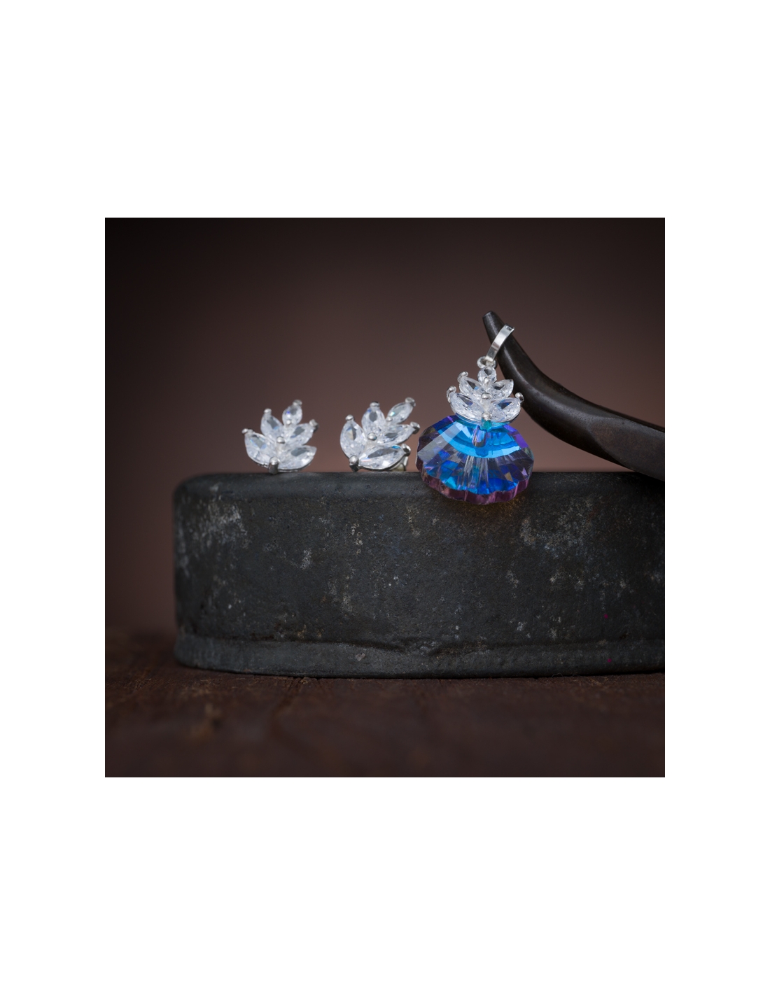 Juegos aretes y dije de plata .925 con cristal y circonia