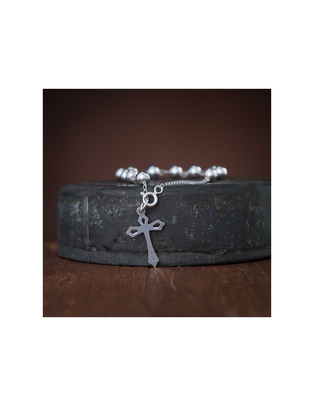 Misterio de plata .925 con bolita lisa #5 y cruz