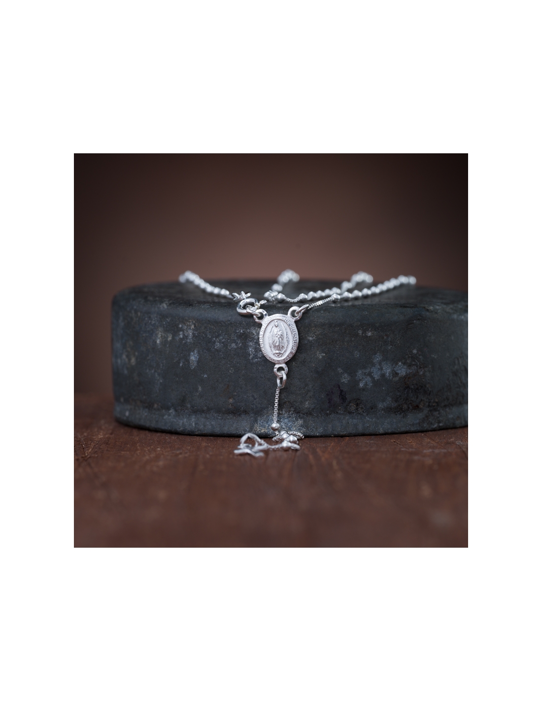 Rosarios de plata .925 cadena veneciana con bolitas lisas, medalla de la virgen, medida 45 cm